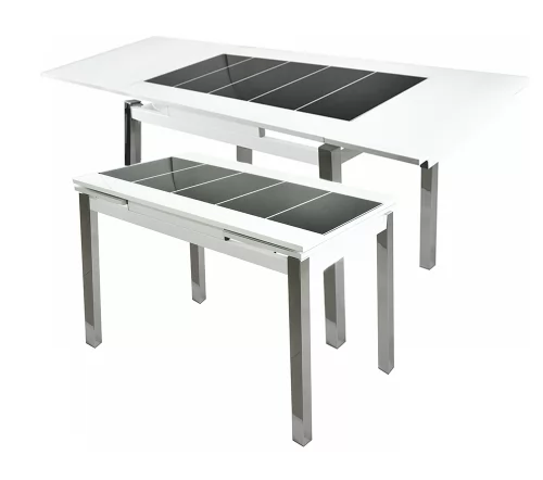 Стол оборудован двумя стеклянными вставками по 300 мм, позволяющими увеличить длину столешницы на 600 мм.