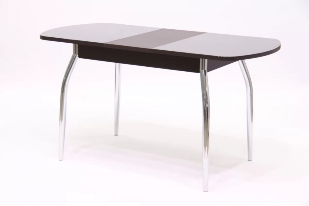 Стол раздвижной со столешницей с закругленными углами. Выполнен из ЛДСП 16 мм и прочного закаленного стекла толщиной 4 мм, окрашенного немецкими керамическими красками Ferro. Высококачественное стекло изготовлено со специальной безопасной фаской Safe face и декорировано кожзамом с фактурой крокодиловой кожи. Закругленные формы столешницы и ножек обеспечивают безопасность при эксплуатации.