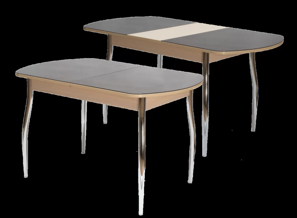 На столах со стеклом допустим незначительный разнотон (разный оттенок) между вставкой (вставками) и половинками столешниц (столешницей).