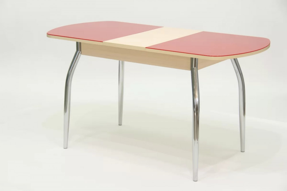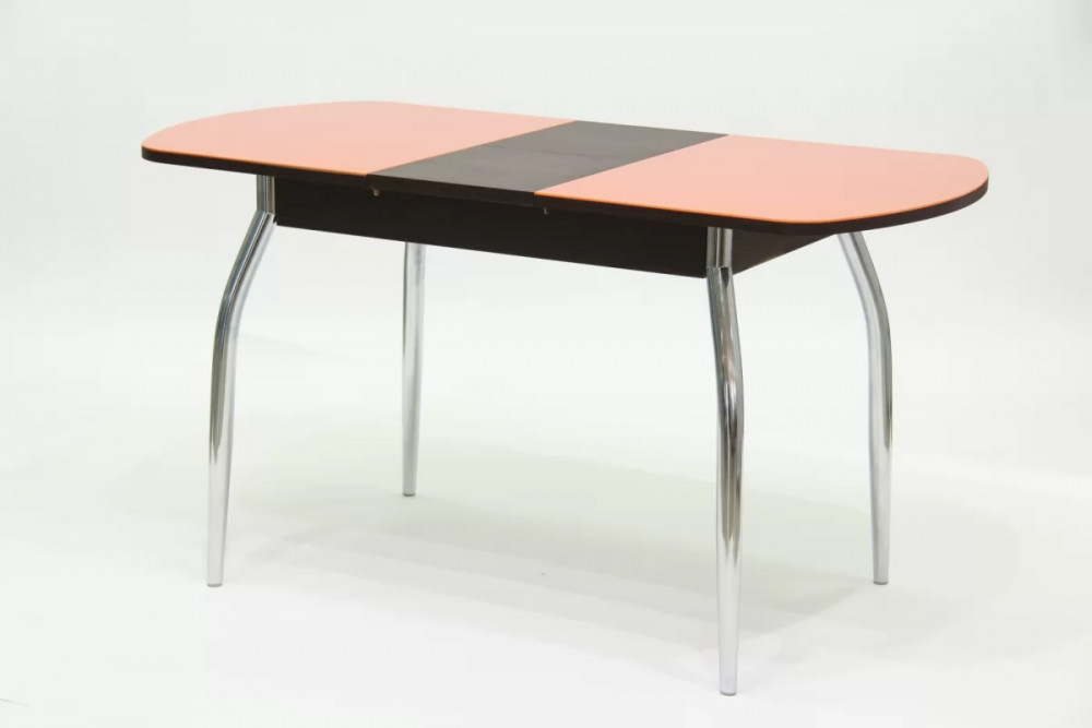 Стол раздвижной со столешницей с закругленными углами. Выполнен из ЛДСП 16 мм и прочного закаленного стекла толщиной 4 мм, окрашенного немецкими керамическими красками Ferro. Высококачественное стекло изготовлено со специальной безопасной фаской Safe face и декорировано кожзамом с фактурой крокодиловой кожи. Закругленные формы столешницы и ножек обеспечивают безопасность при эксплуатации.