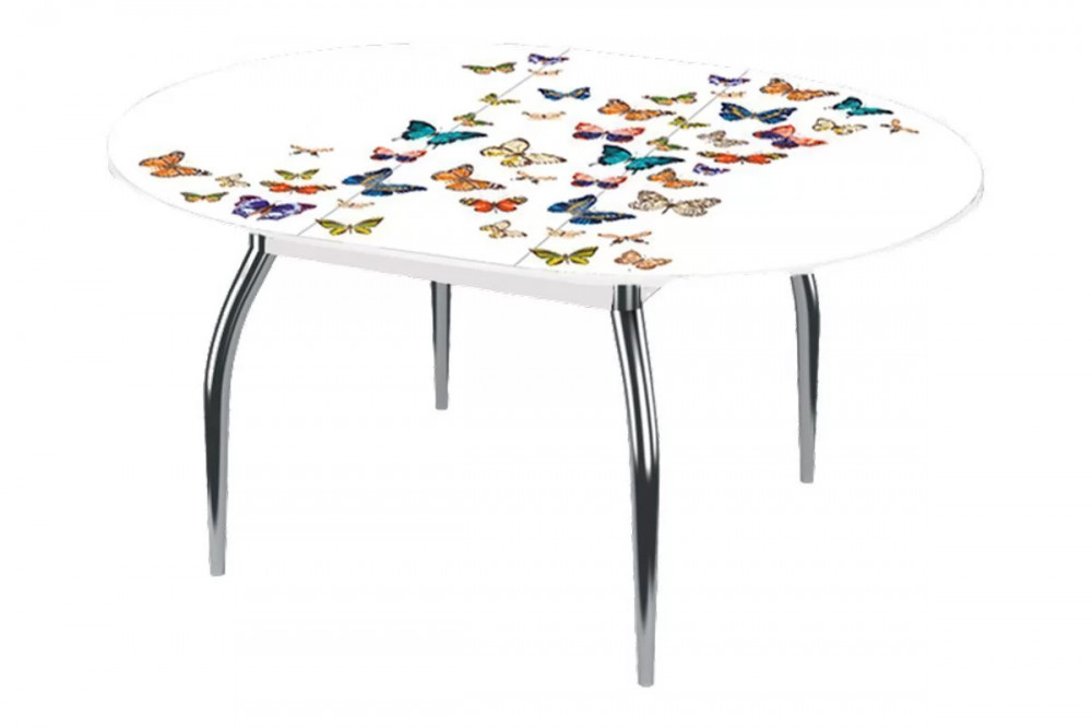 Стол овальный Бостон Ваниль, 900*600 мм, фотопечать/хром триумф