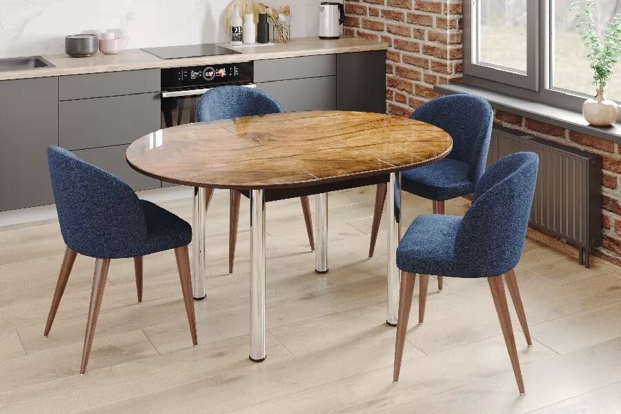 Стол овальный Бостон Шоколад, 900*600 мм, фотопечать/ хром триумф