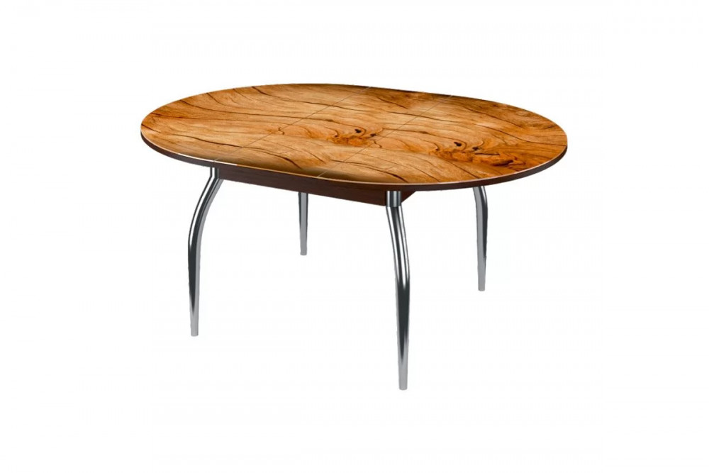 Стол овальный Бостон Шоколад, 900*600 мм, фотопечать/ хром триумф