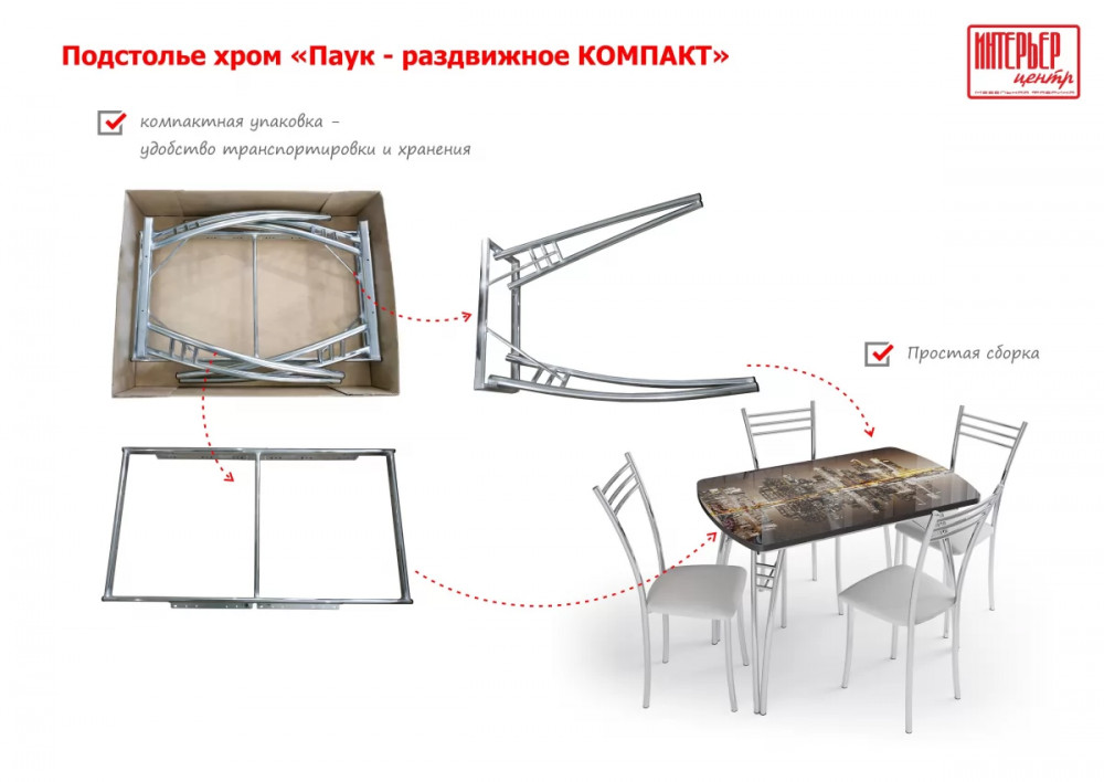 - Металлическое подстолье "паук" с механизмом синхронного раздвижения и фиксатором 1080х740х660 мм