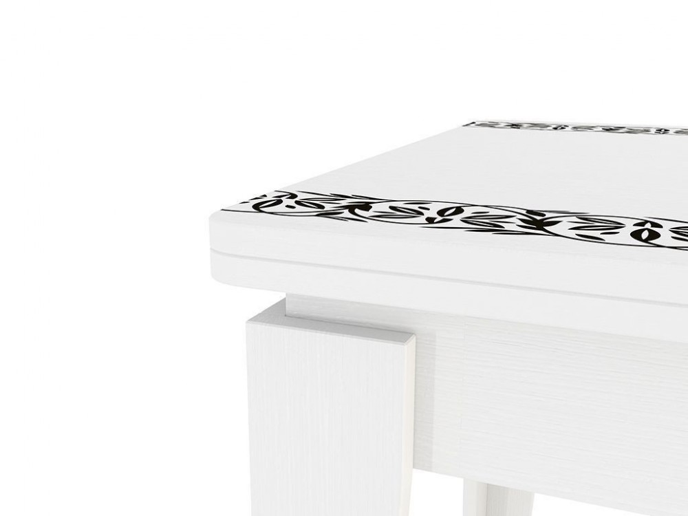 раскладывается и складывается, если нужно. Столешница декорированна классическим рисунком.