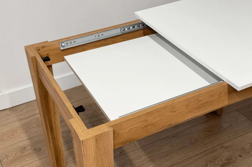 * благодаря раздвижному механизму стол легко превращается из компактного в просторный вариант;