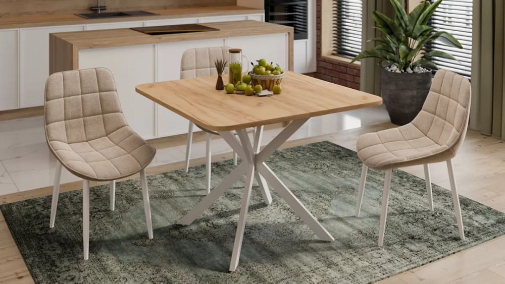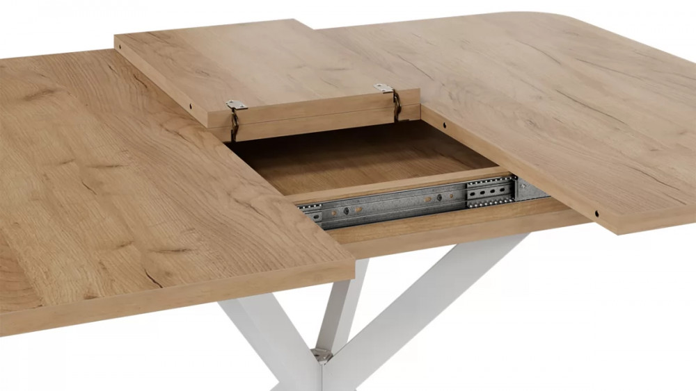 Стол обеденный раздвижной «Лиссабон» Тип 1 Белый муар, Дуб Крафт золотой