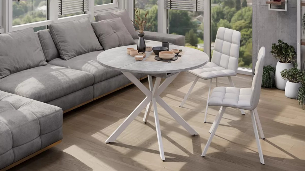 Стол обеденный раздвижной «Мэдисон» Тип 1 Белый муар, Ателье светлый