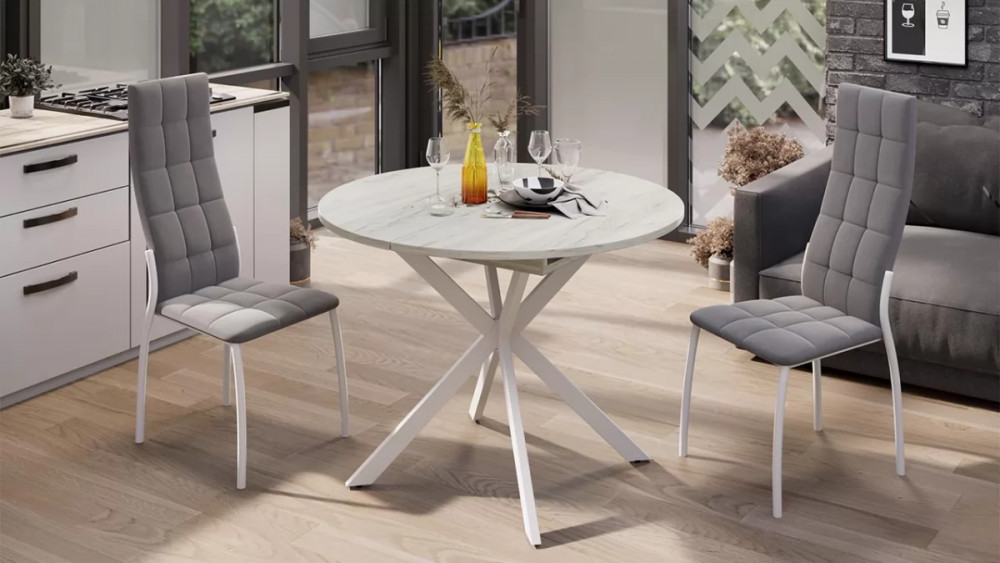 Стол обеденный раздвижной «Мэдисон» Тип 1 Белый муар, Дуб Крафт белый