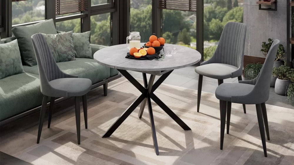 Стол обеденный раздвижной «Мэдисон» Тип 1 Черный муар, Ателье светлый