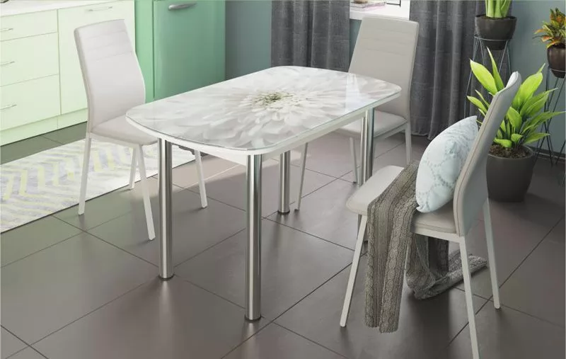 Стол круглый Бостон раздвижной, фотопечать Жемчуг/белый/хром брифинг