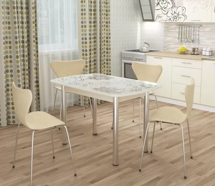 Стол круглый Бостон раздвижной, фотопечать Жемчуг/белый/хром брифинг