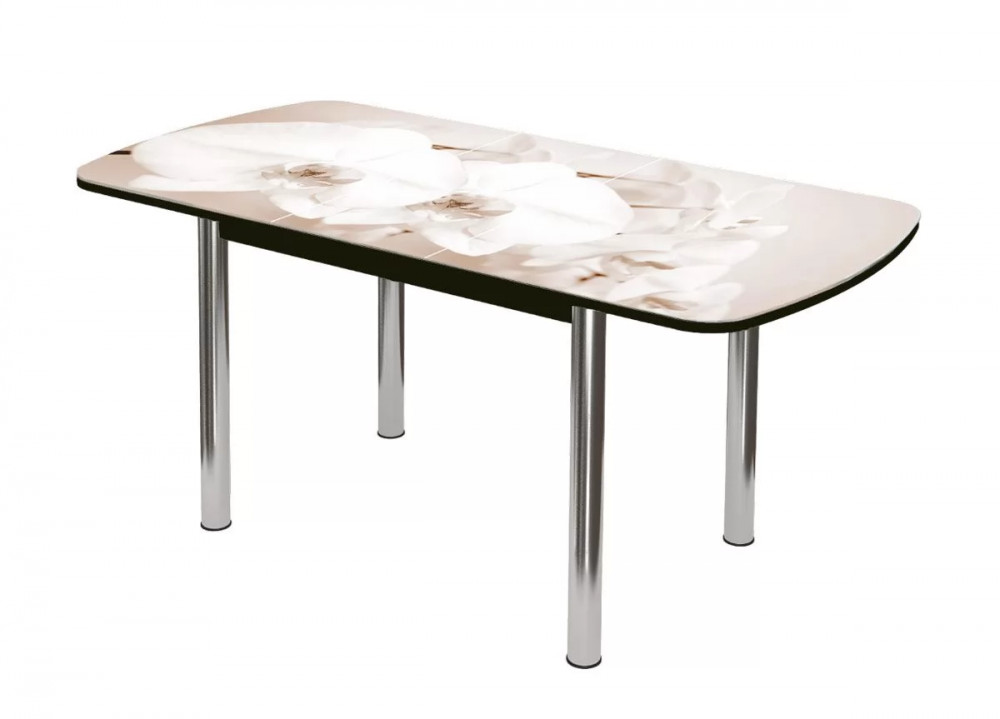 Стол Бостон-3 Белая орхидея, раздвижной, фотопечать/белый/хром триумф