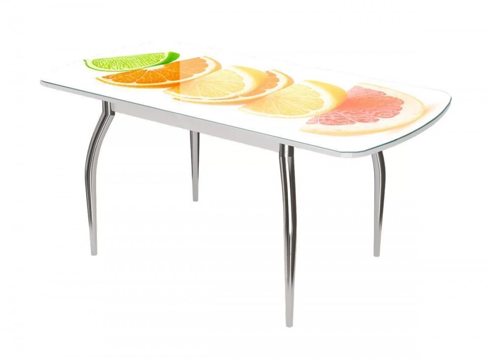 Стол Бостон-3 раздвижной, ваниль, фотопечать/хром брифинг
