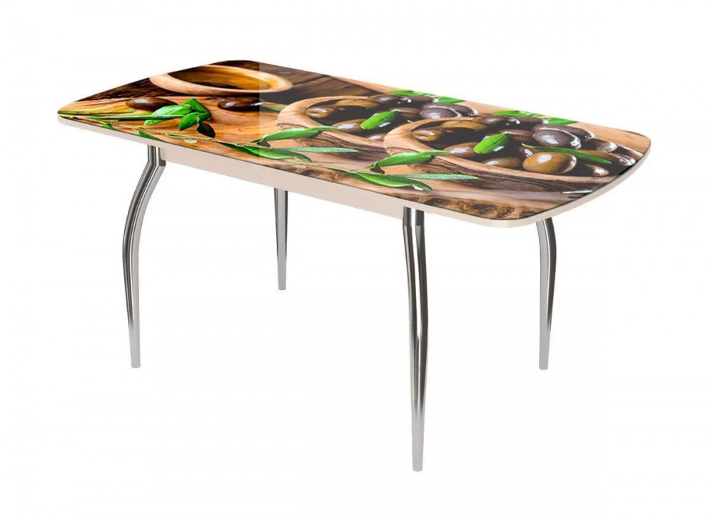Стол Бостон-3 раздвижной, ваниль, фотопечать/хром брифинг