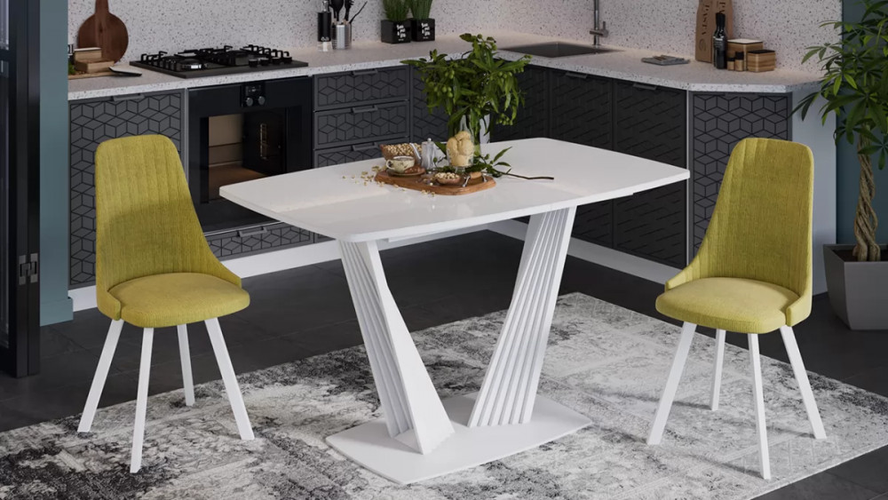 Стол раздвижной «Фабио» Тип 1 Стекло матовое белый мрамор