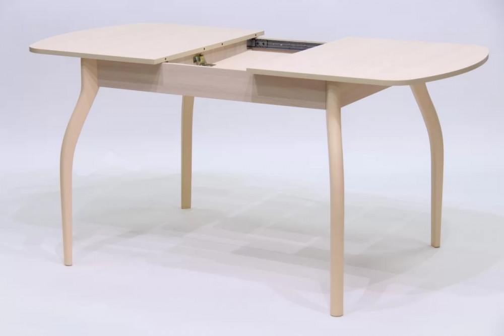 Современный и функциональный кухонный стол. Оборудован механизмом синхронного раздвижения и дополнительной вставкой с системой раскладки Butterfly, позволяющей увеличить длину столешницы на 300 мм. Столешница с закругленными краями выполнена из ЛДСП 16 мм.