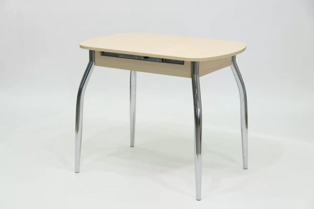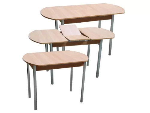 Современный и функциональный кухонный стол. Оборудован механизмом синхронного раздвижения и дополнительной вставкой с системой раскладки Butterfly, позволяющей увеличить длину столешницы на 300 мм. Столешница с закругленными краями выполнена из ЛДСП 16 мм.