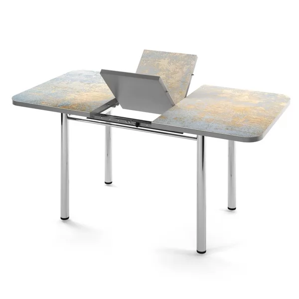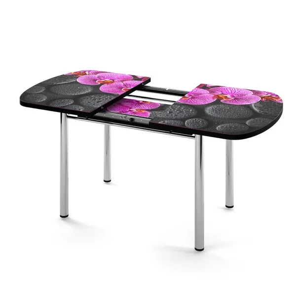 Стол «Трилогия», представляет собой разборную конструкцию, состоящую из прямоугольной столешницы с двумя скругленными сторонами (+ вставка в раздвижном варианте) и цельносварного подстолья. Стол изготавливается в неразборном и раздвижном виде, с двумя вариантами раскладывания (вставка 300мм или вставка-бабочка 300мм).