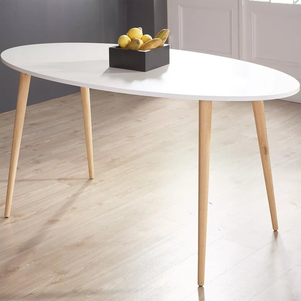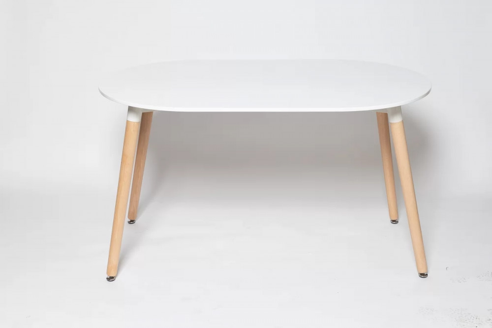 Стол в стилей Eames — настоящий хит скандинавского дизайна, уже несколько лет не теряющий своей популярности. Столешница выполнена из экологичного матового МДФ, по износостойкости и долговечности превосходящего натуральную древесину. Белый цвет столешницы привносит в пространство ощущение чистоты и свежести. Ножки из цельного массива светлого бука и геометрические металлические подпорки делают стол невероятно устойчивым и прочным. Благодаря натурального расцветке и округлой форме стол в стиле Eames DSW идеально впишется как в жилое помещение, так и в общественную зону кафе или ресторана, особенно хорошо подчеркнув интерьер в стиле минимализм или хай-тек.