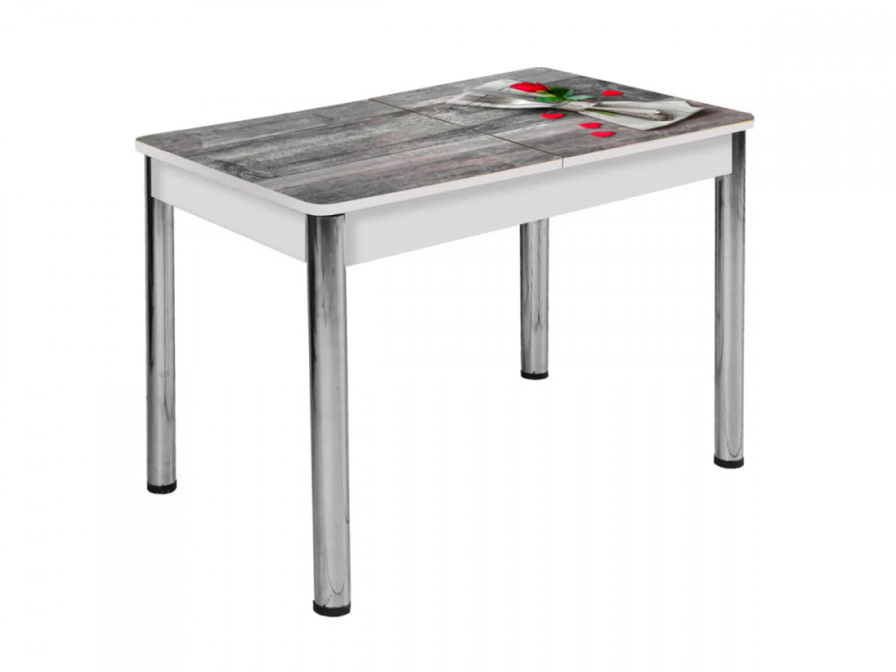 Стол Триумф раздвижной опоры круглые хром белый #1818410582