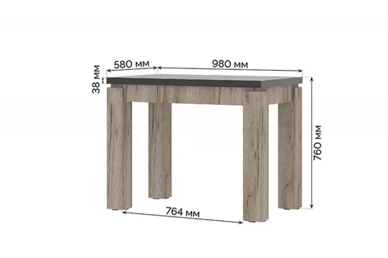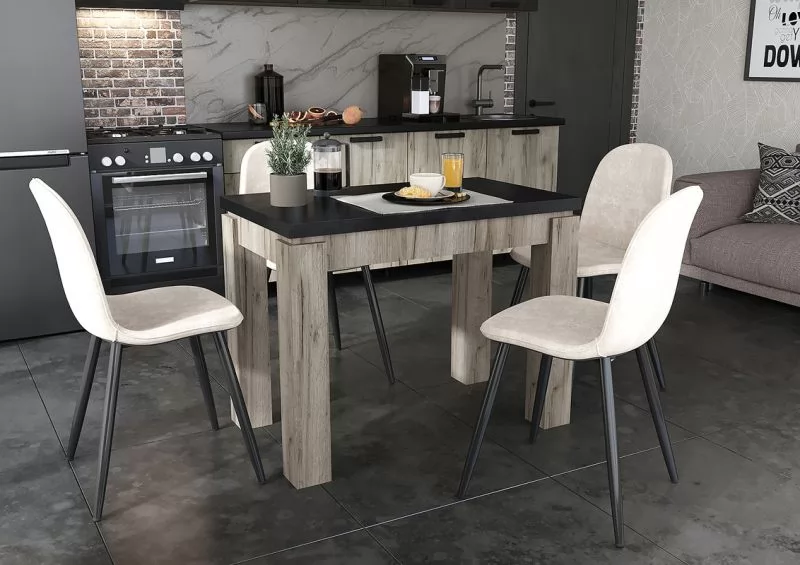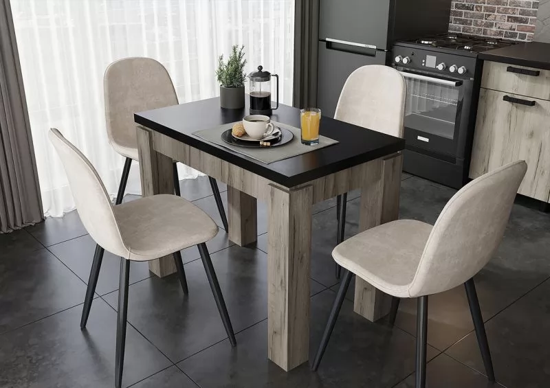 ЭДИНБУРГ Стол кухонный (980*580*760мм), пластик/ЛДСП Черный. Дуб Крафт Серый