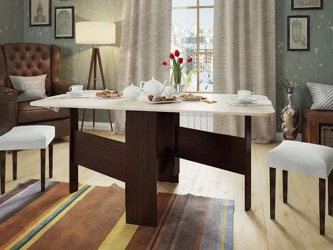 Мечта, когда мебель умеет превращаться во что-то большее! Например, стол «Мечта 2» может быть и компактной тумбой, и большим столом для 6 человек. Благодаря светлой столешнице, в сложенном виде стол визуально не загромождает пространство. Не мечта – реальность!