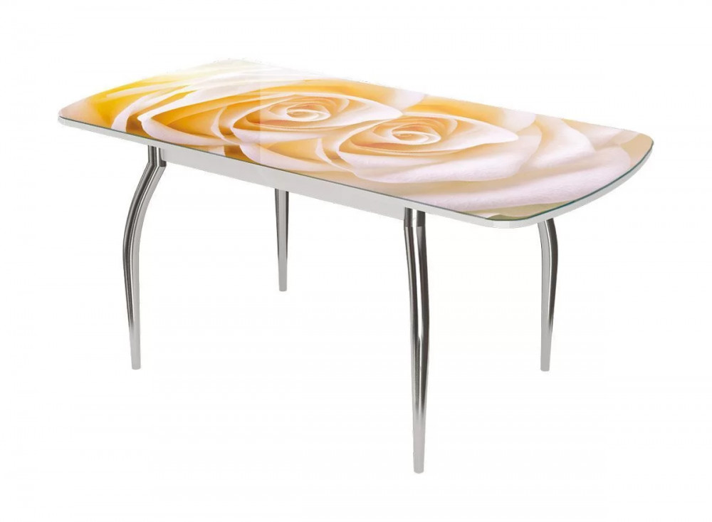 Стол Бостон-3 раздвижной, фотопечать Розы/белый/хром брифинг