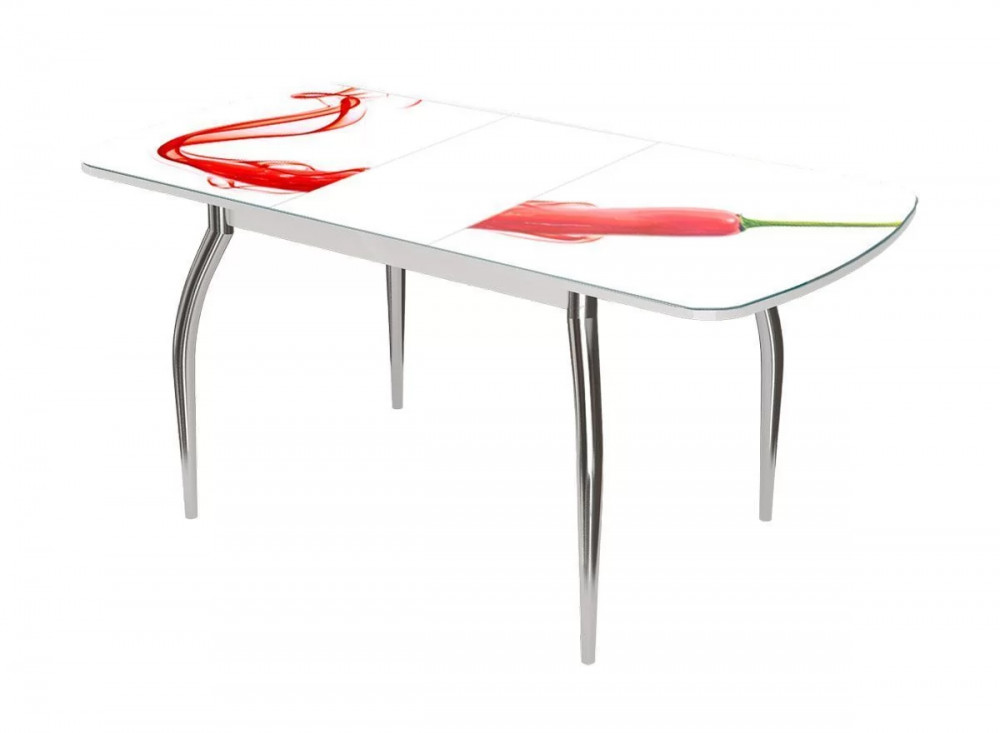 Стол Бостон-3 раздвижной, ваниль, фотопечать/хром брифинг