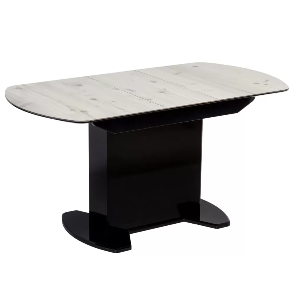 Стол раздвижной выполнен из МДФ 22 мм, покрытого закаленным стеклом 4 мм спеченным с пластиком HPL, вставка цельная 40 см хранится внутри стола. Стоит на опоре-колонне из МДФ с основанием эргономичной формы.