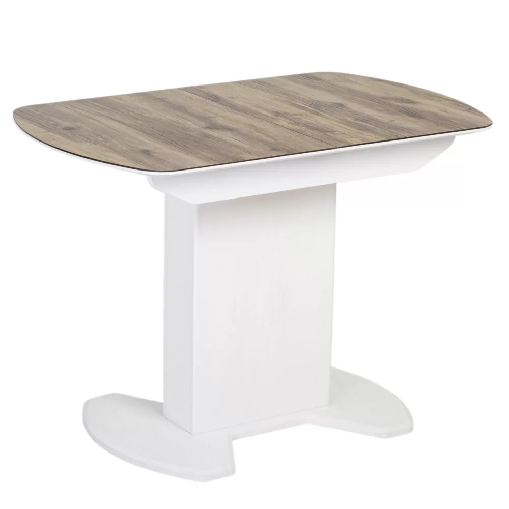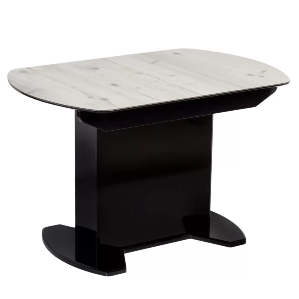 Стол раздвижной выполнен из МДФ 22 мм, покрытого закаленным стеклом 4 мм спеченным с пластиком HPL, вставка цельная 40 см хранится внутри стола. Стоит на опоре-колонне из МДФ с основанием эргономичной формы.