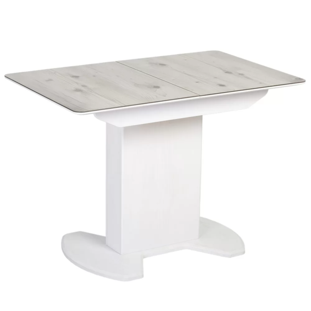 Стол нераздвижной выполнен из МДФ 22 мм, покрытого закаленным стеклом 4 мм спеченным с пластиком HPL. Стоит на опоре-колонне из МДФ с основанием эргономичной формы.