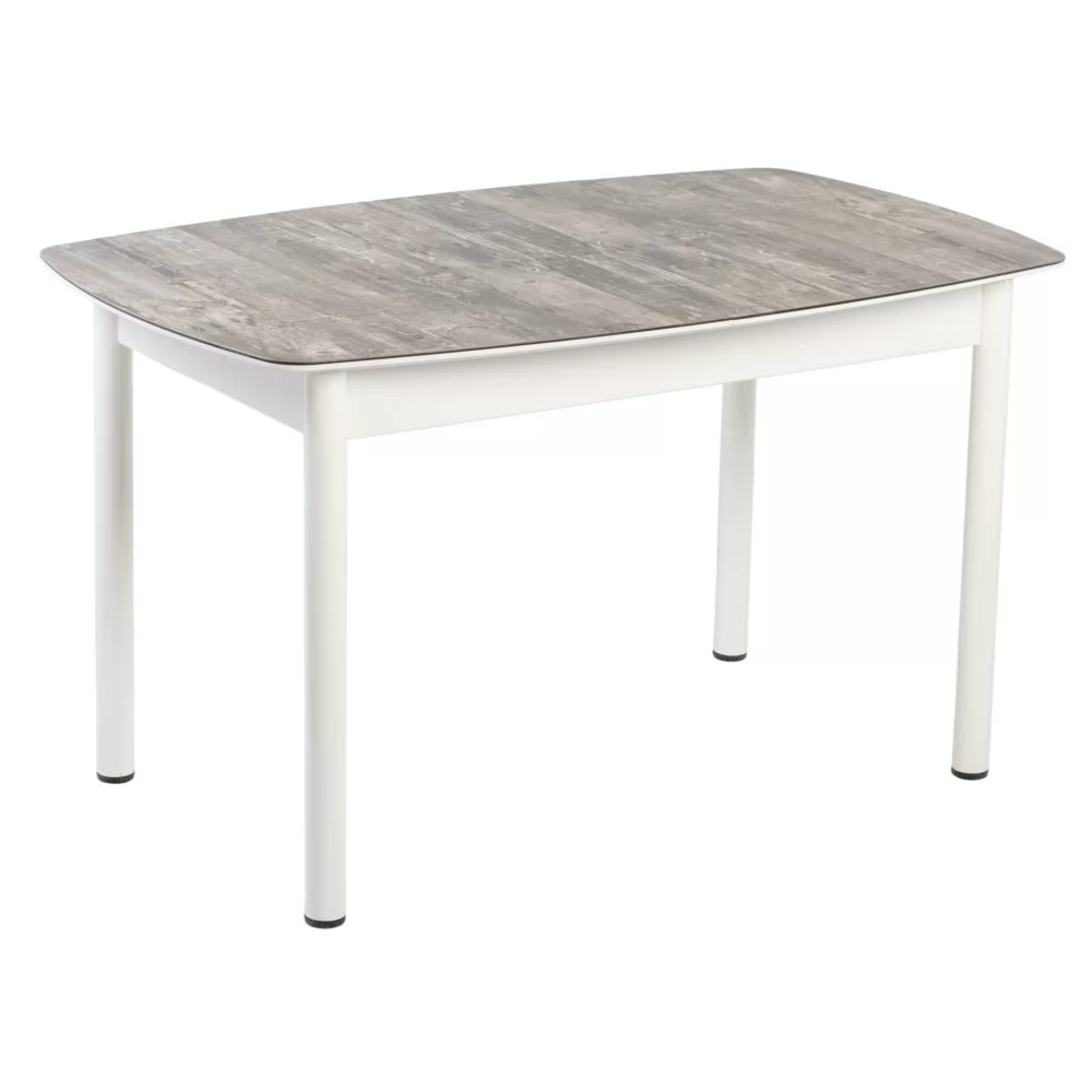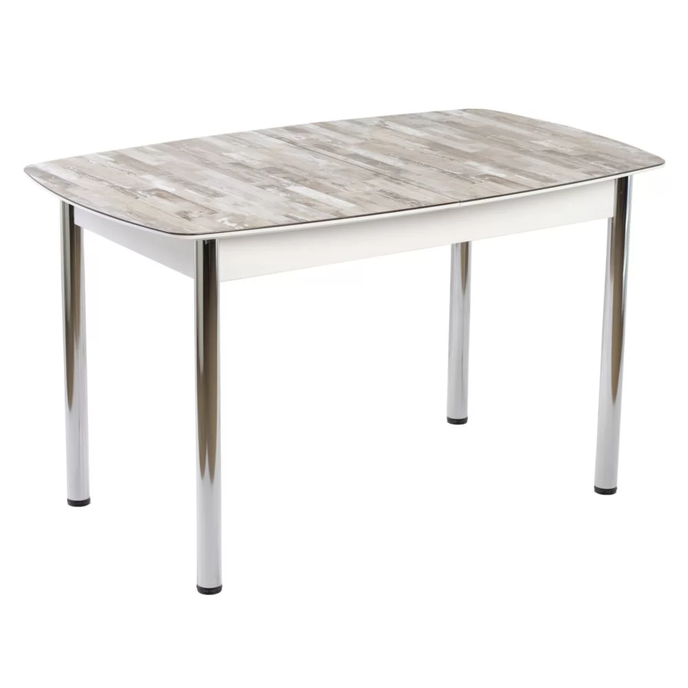 Стол раздвижной выполнен из МДФ 22 мм, покрытого закаленным стеклом 4 мм спеченным с пластиком HPL, вставка-бабочка из ЛДСП 38 см. В базовой комплектации опоры массив диагональные.