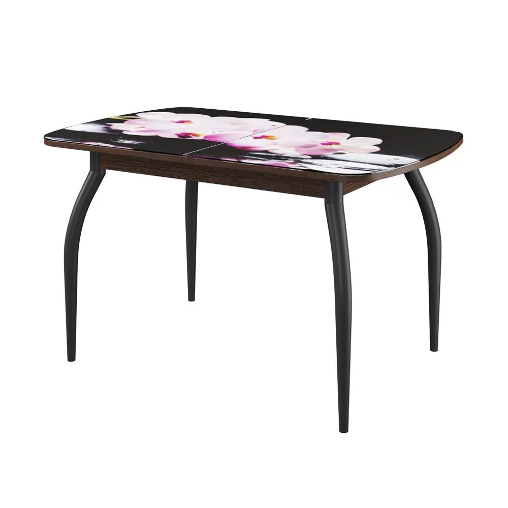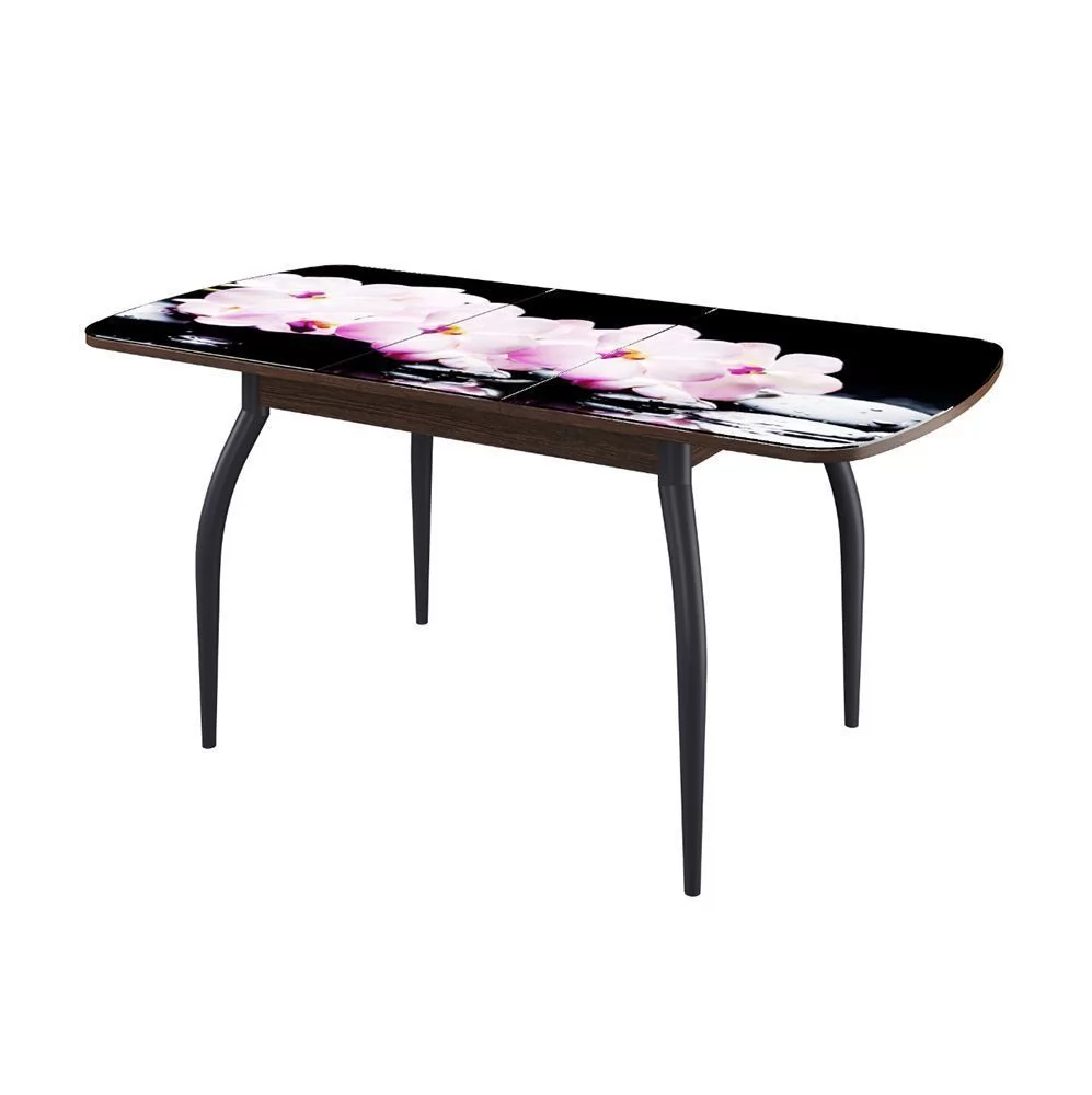 Стол овальный Бостон-2, фотопечать Розовая орхидея/венге/черные опоры триумф