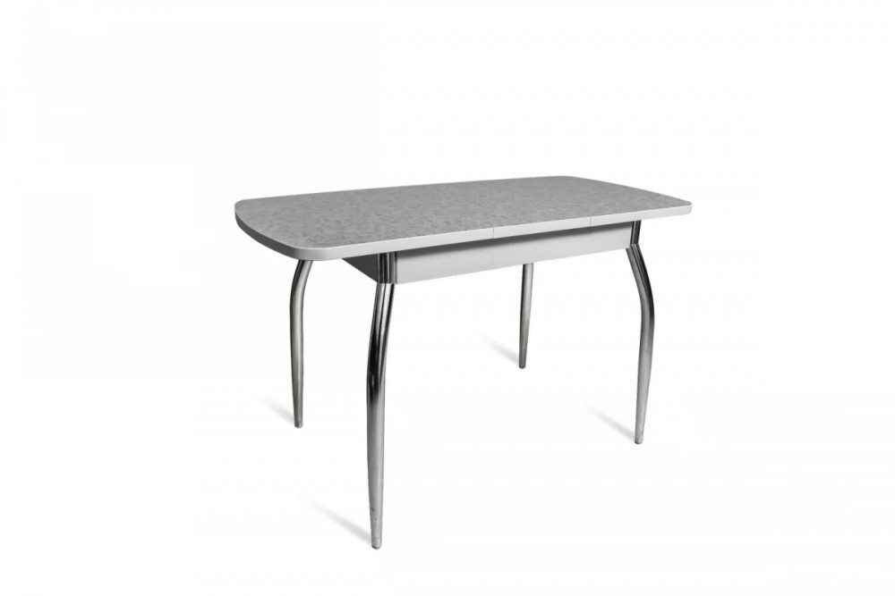 Стол (раздвижной) выполнен из ДСП 26мм покрытый пластиком HPL, вставка 32 см хранится внутри стола. В базовой комплектации опоры гнутые хром