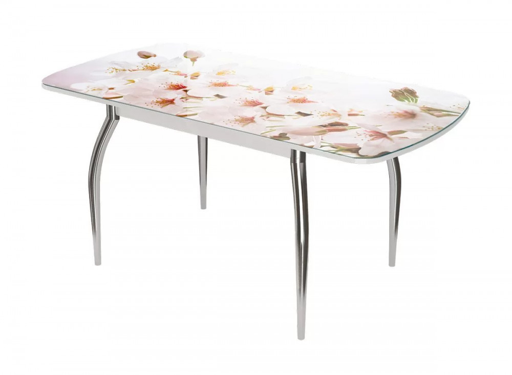 Стол Бостон-3 Белая орхидея, раздвижной, фотопечать/белый/хром триумф