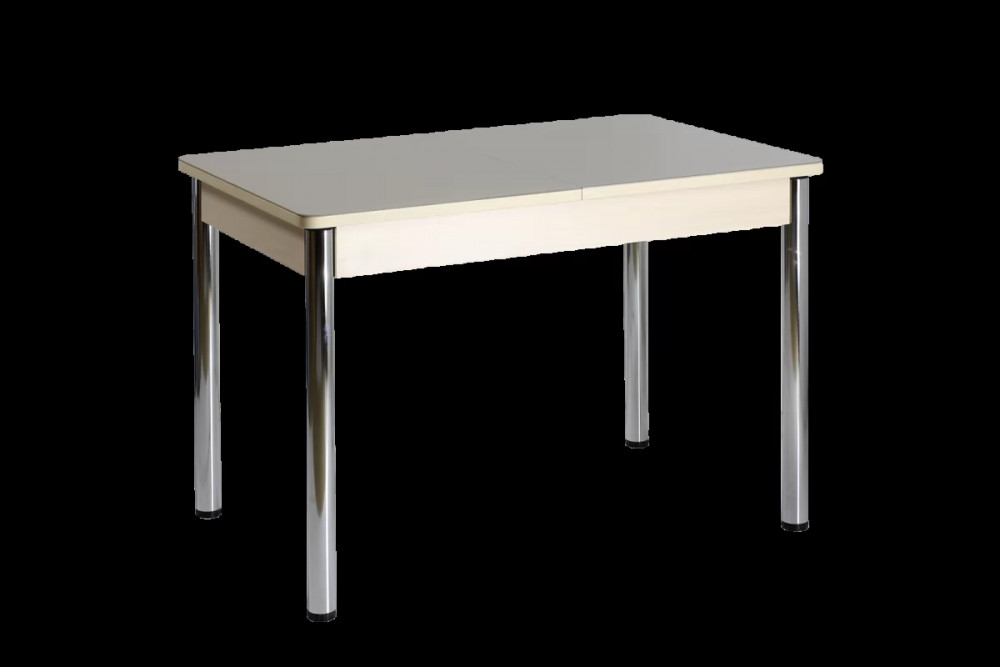 Раздвижной прямоугольный стол. Столешница выполнена из ЛДСП 22 мм с закаленным стеклом, торцы столешницы облицованы кромкой ПВХ . В базовой комплектации ноги из массива бука в цвет основания стола. Цельная вставка 32 см покрытая также окрашеным закалённым стеклом хранится внутри стола.