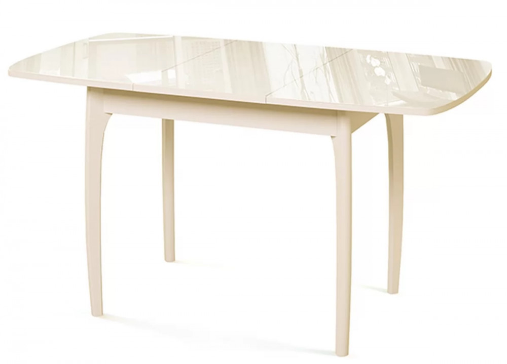 Столешница стола выполнена из ЛДСП 16мм, покрыта пленкой ПВХ и стеклом 4мм. Ножки стола выполнены из массива бука. Механизм раскладывания: синхронный.