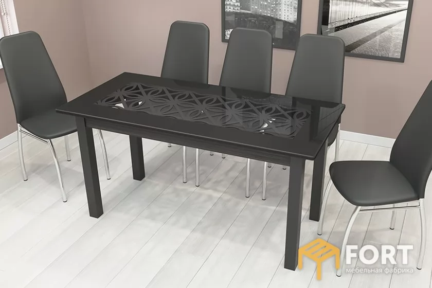 Стол обеденный «Техно» Черный муар, Стекло глянцевое белый мрамор