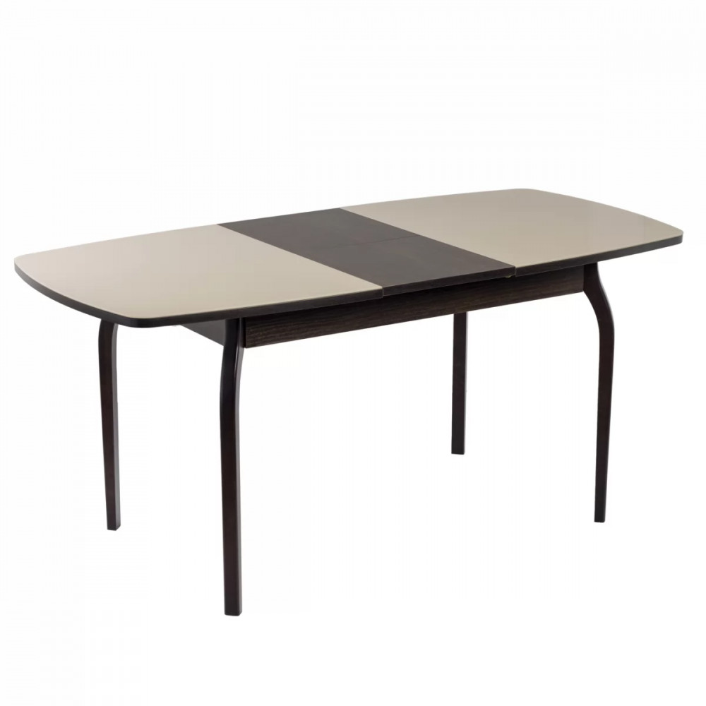 Стол раздвижной выполнен из ЛДСП 22 мм, покрытого окрашенным закаленным стеклом 4 мм с безопасной фаской, вставка-бабочка из ЛДСП 38 см. В базовой комплектации опоры массив диагональные.