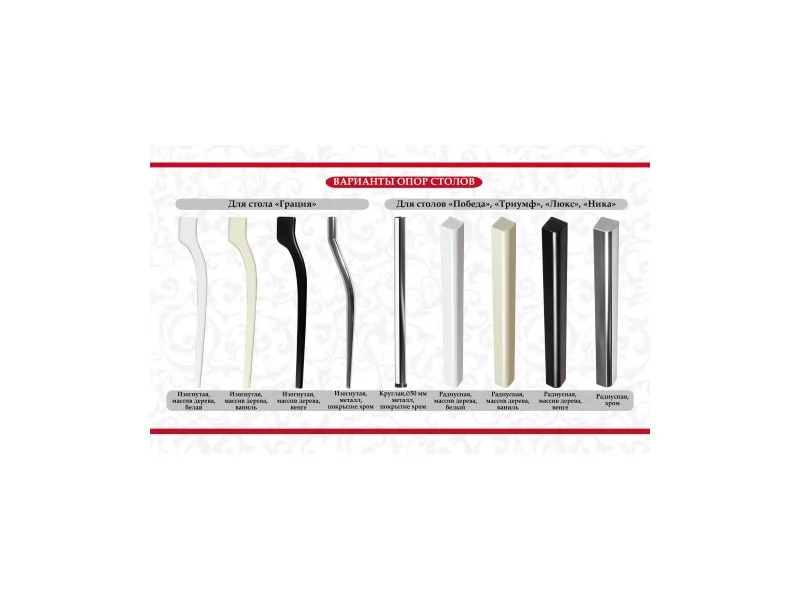 При производстве столов Грация применяется уникальная технология окрашивания вжигаемой в стеклянную поверхность керамической краски, которая становится его частью и не снимается даже под механическим, химическим воздействием.