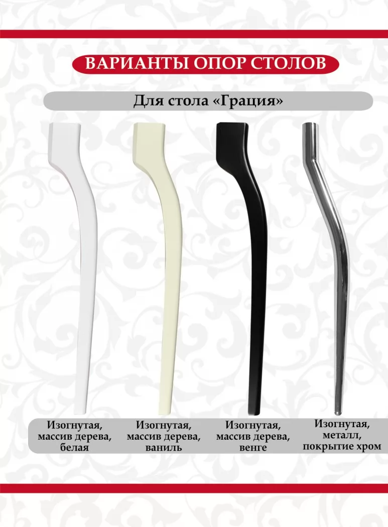 Посмотреть все возможные варианты расцветки стола и фото столов "Грация"