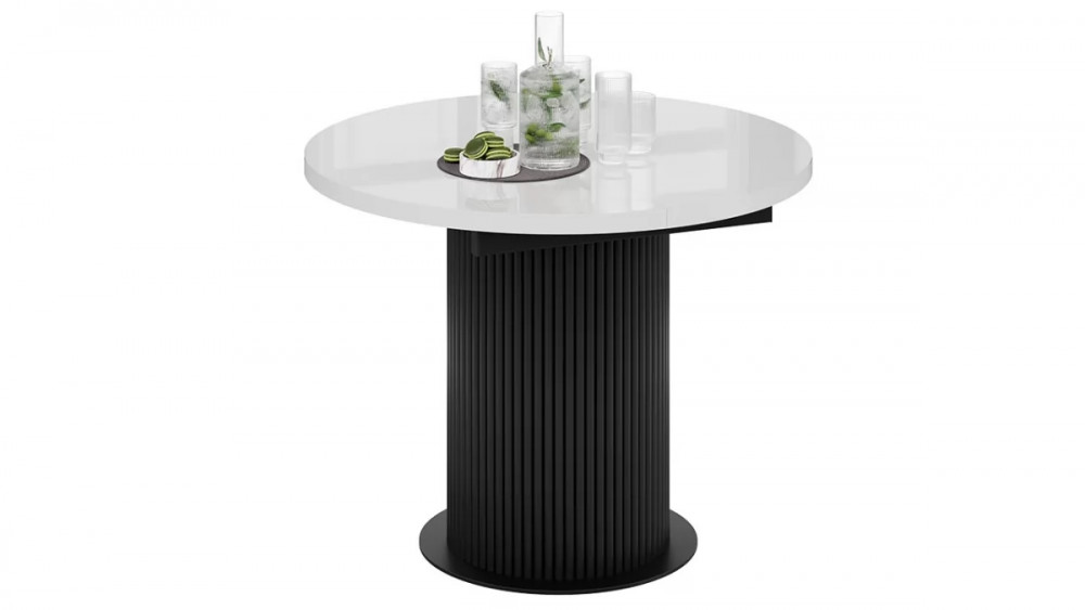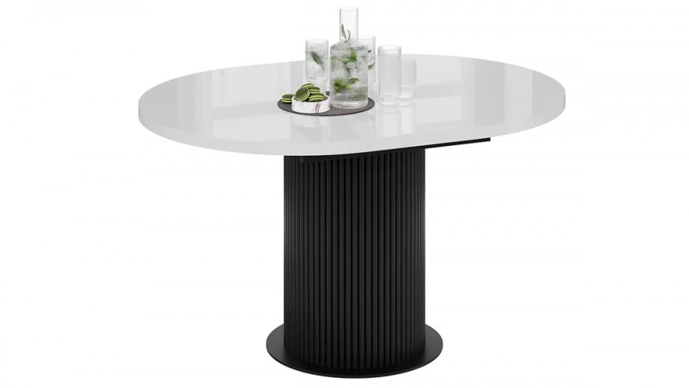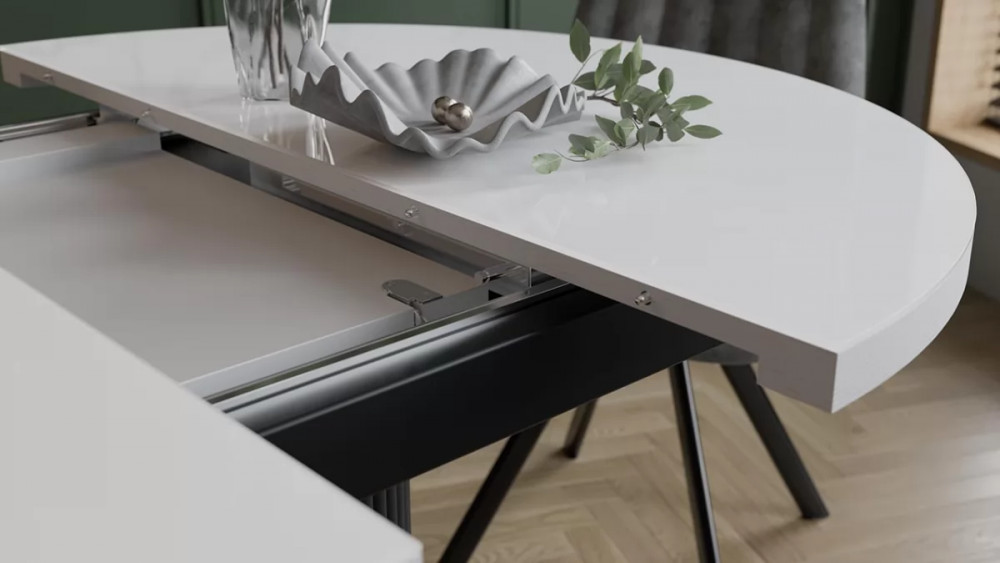 Стол обеденный раздвижной «Эридан» Тип 1 Черный муар, Стекло глянцевое белое