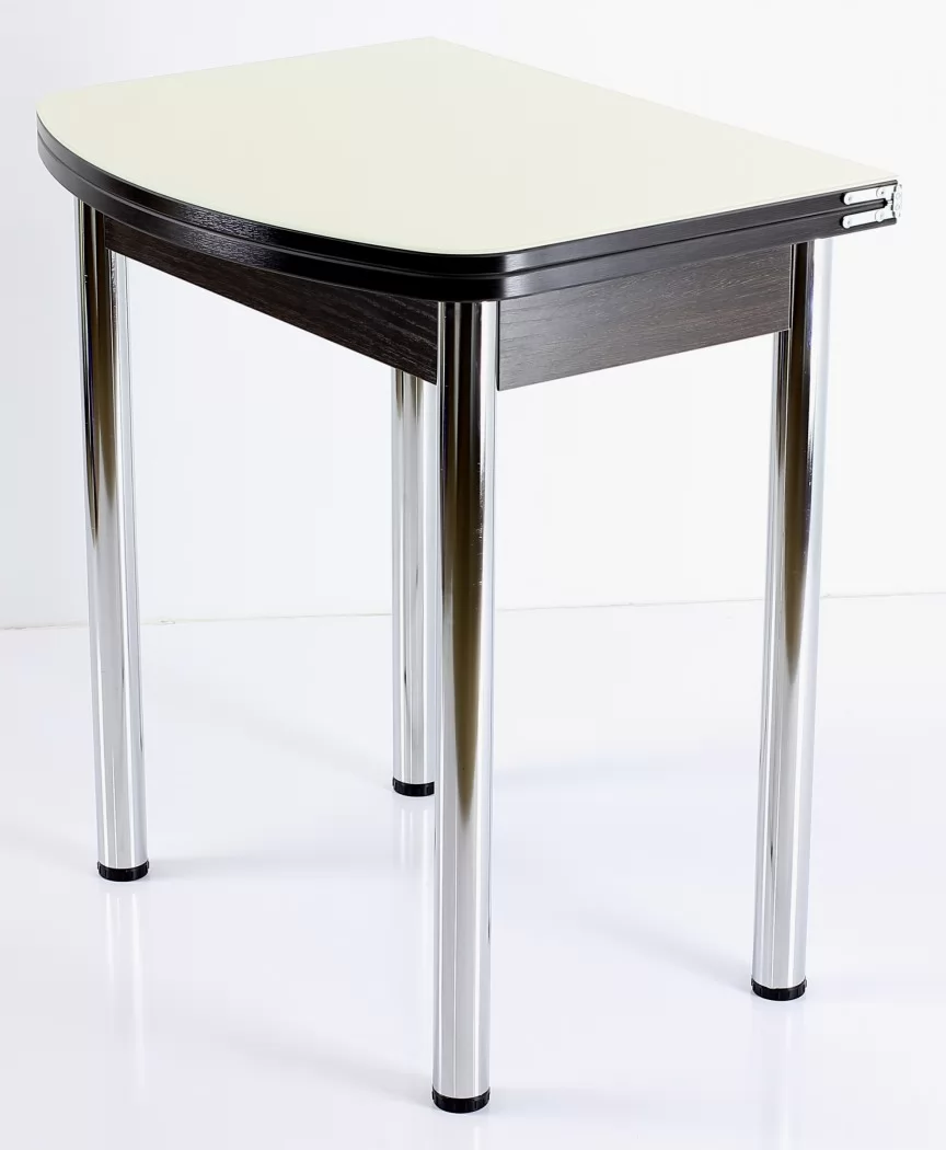 Стол приставной поворотно-раскладной. Столешница выполнена из ламинированного ДСП. В базовой комплектации опоры прямые хром. В сложенном состоянии верхняя столешница с окрашеным закаленным стеклом 4мм