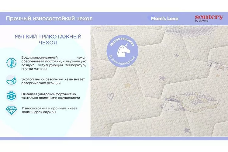 Матрас MOM'S LOVE Junior 800*1800мм (кокос, тритажный чехол, жесткий h 7,5см)