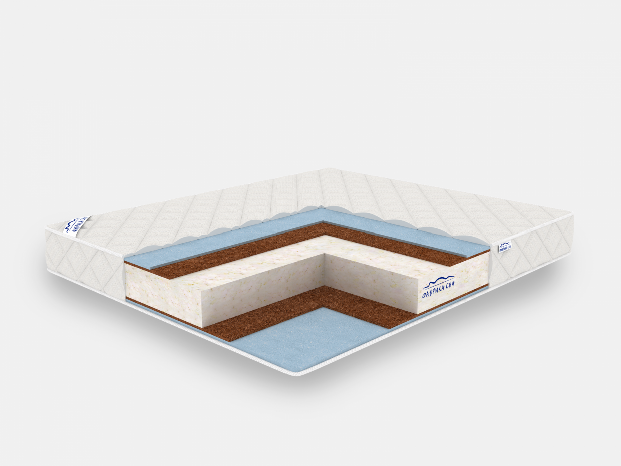 Состав: Пена - 1 см/Кокосовая койра - 1 см/Высокоэластичный пенополиуретан вторичного вспенивания - 14 см/Кокосовая койра - 1 см/Пена - 1 см