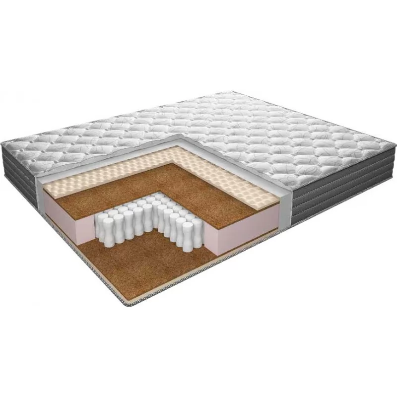 Жесткий матрас на основе блока независимых пружин «Грация» Основной наполнитель: ортопедическая пена и упругое полотно. Комбинированный би-кокос является гипоаллергенным материалом и придает матрасу жесткость. Система комфорта «Basic Plus»: прочное покрытие на гипоаллергенном объемном наполнителе повышенной плотности, обеспечивающее максимальный комфорт во время сна.