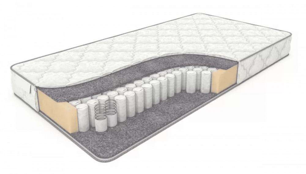 Основа этого изделия выполнена из простого но надежного блока независимых пружин. Между чехлом и блоком матрац наполнен специальным термовойлоком. Его важнейшей функцией является защита материалов от пружин и сохранение тепла. Благодаря такой структуре матрас также не пропускает холодный воздух. Каждая пружина блока помещается в отдельный чехол, это дает гарантию на более долгий срок эксплуатации данного изделия. Из-за своей невысокой цены и хорошего качества эта модель пользуется популярностью среди дачников.