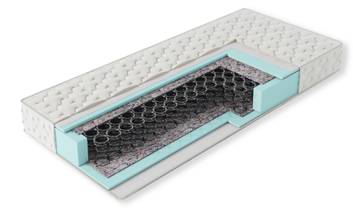 Матрас на основе классической пружинной системы "Bonnell", с такими наполнителями как ватин и пенополиуретан создают комфортные условия для сна. Модель низкой степени жесткости.