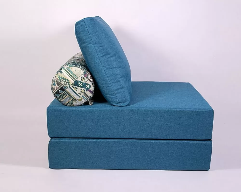 Описание: Изготовлен на основе поролона, чехлы съемные, матрасик на синтетическом волокне спрятан в валике, раскладывается в спальное место.